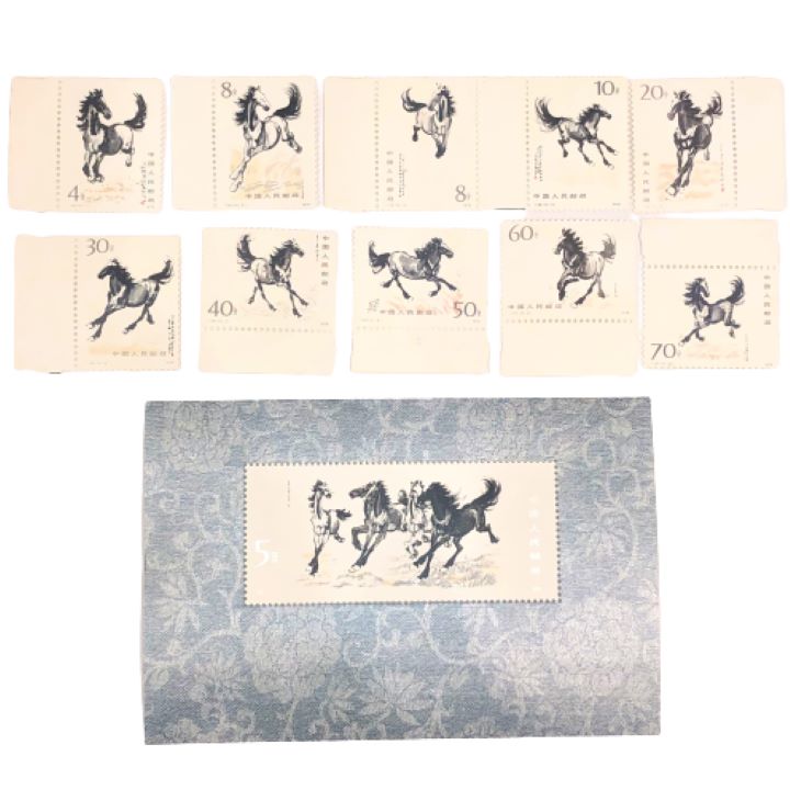 T28 徐悲鴻 奔馬シリーズ 10種完 小型シート 1978年